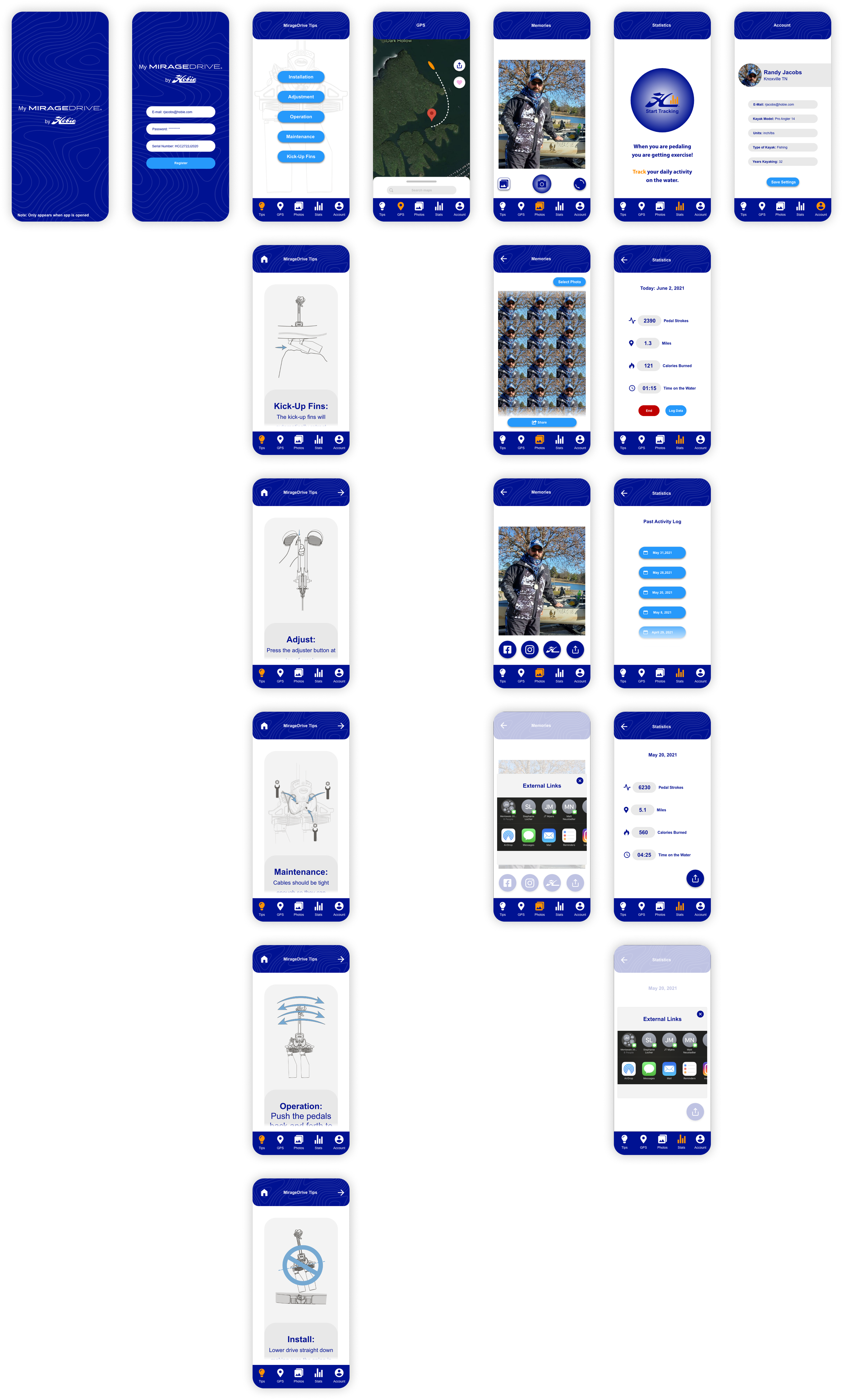 Most of my work at Hobie was dedicated to industrial design and physical products. I decided to explore our first digital product (mobile app) that could integrate cohesively with our line of Hobie Kayaks and our world-renowned Hobie MirageDrive Propulsion system.